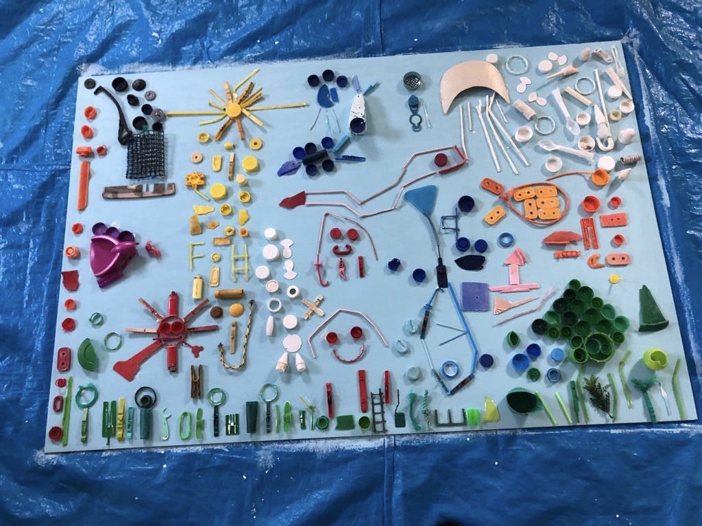 By learning about the history and the project of the marine biologist – “Plasticus maritimus, an invasive species”, the children created an artistic picture with the pieces of plastic rubbish previously found on the beach, combining the enriching experience with the biologist’s testimony.